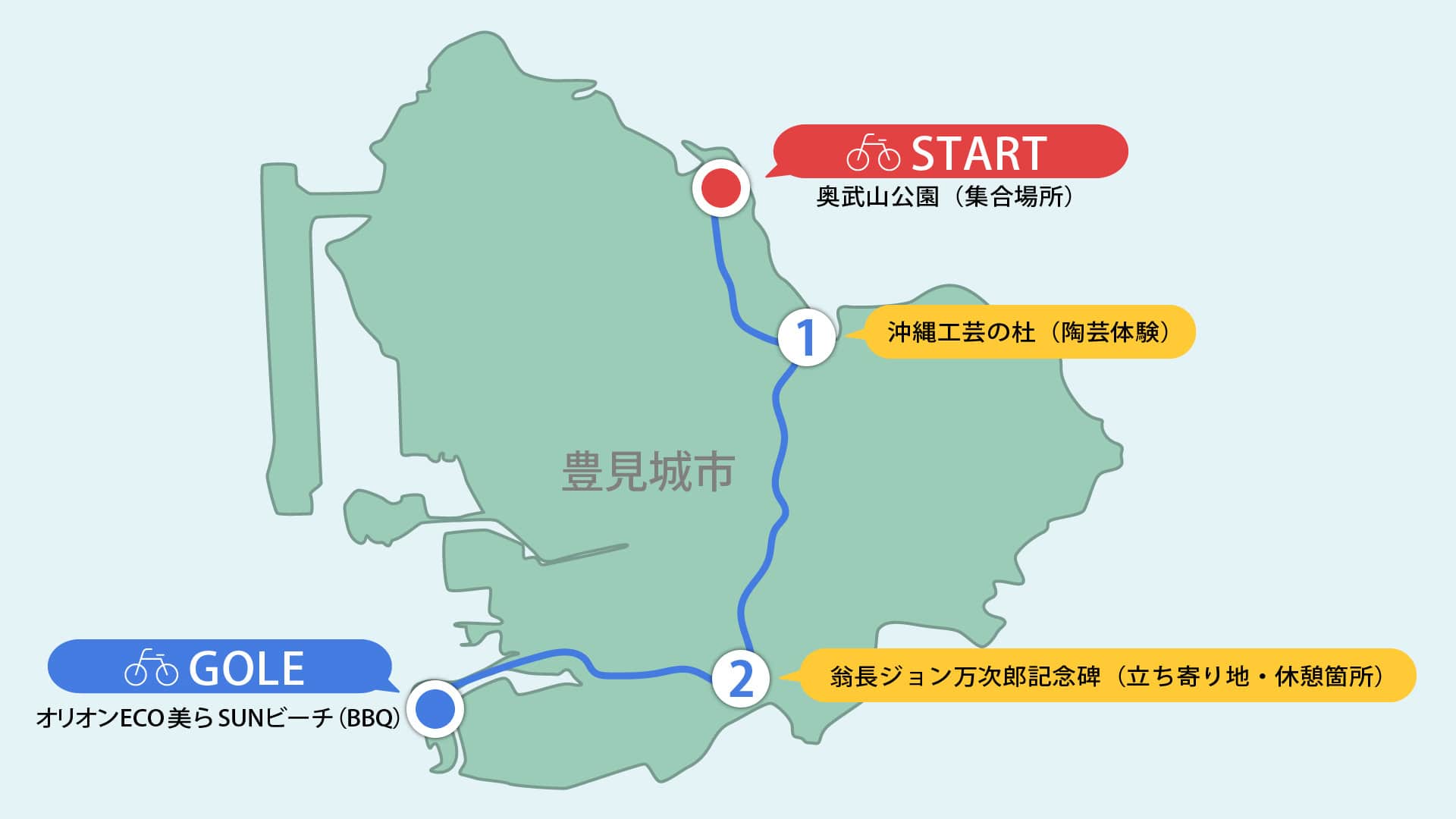 ・走行時間としては1時間程度。陶芸体験や休憩、BBQを含め14時半前後には終了予定です。